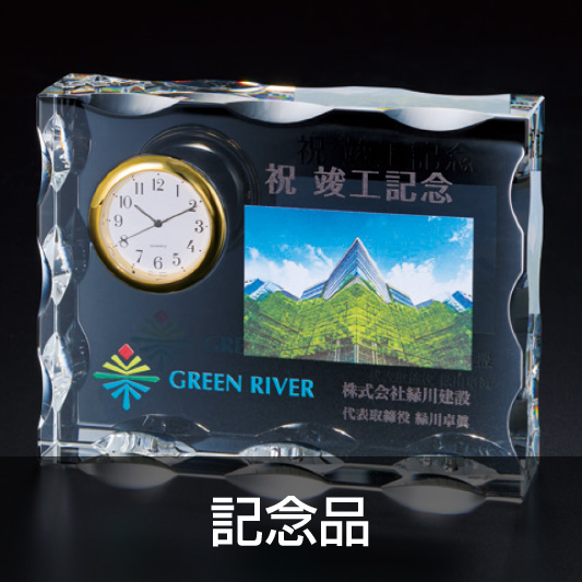 フォトスタンド・置時計・グラス・タオルなど。式典やイベント、販促品として喜ばれる商品。